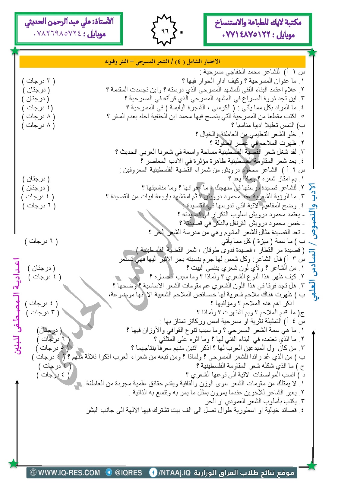 السادس الاعدادي - الادب والنصوص